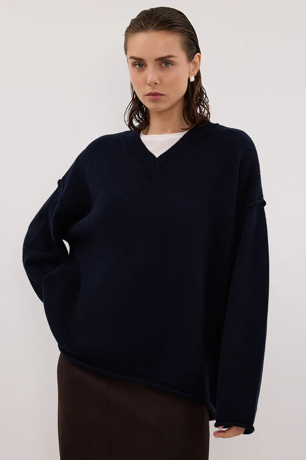 FLINT INK V NECK KNIT JUMPER
